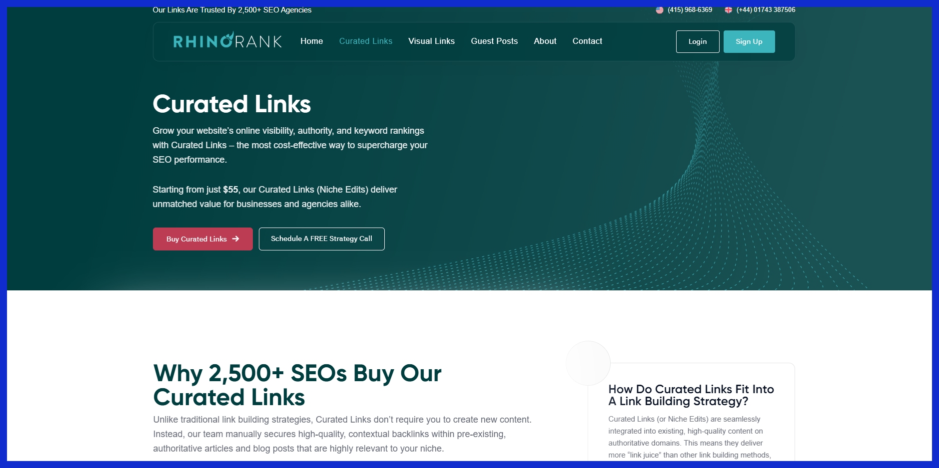 Rhino Rank focuses on guest post links and curated links, with packages designed to appeal to cost-effective SEOs and small niche site owners. Packages begin at $33/month and scale according to volume and link quality.